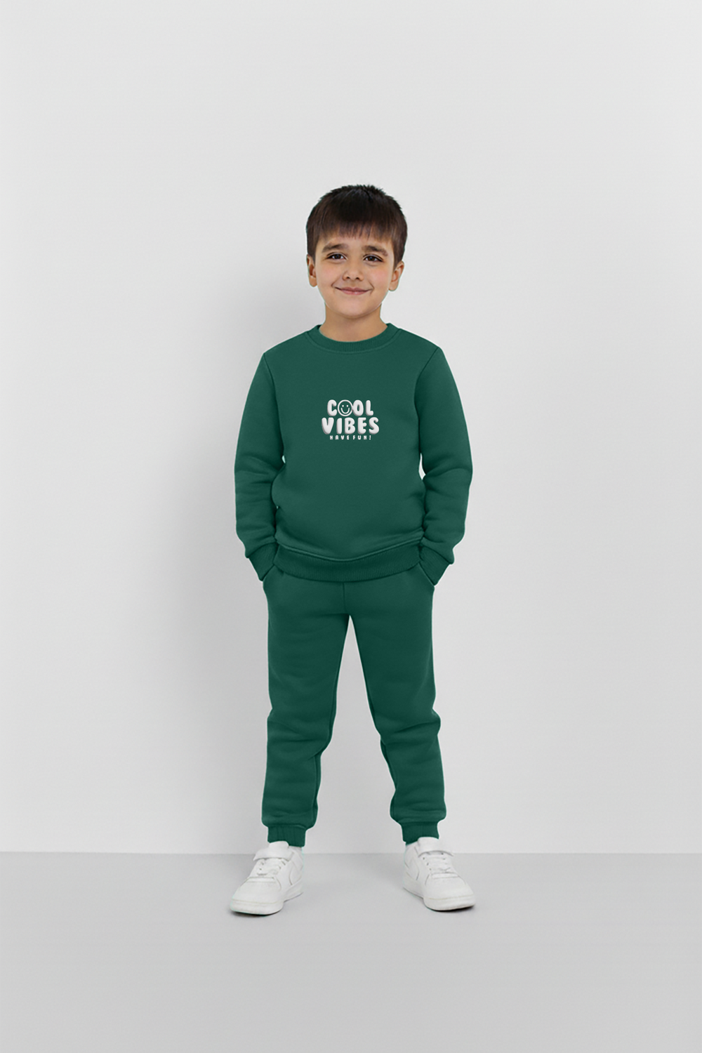 Stay cozy in winter with this ultra-soft green cool vibes sweatshirt and trouser set, crafted from export-quality fabric for a premium look and feel.