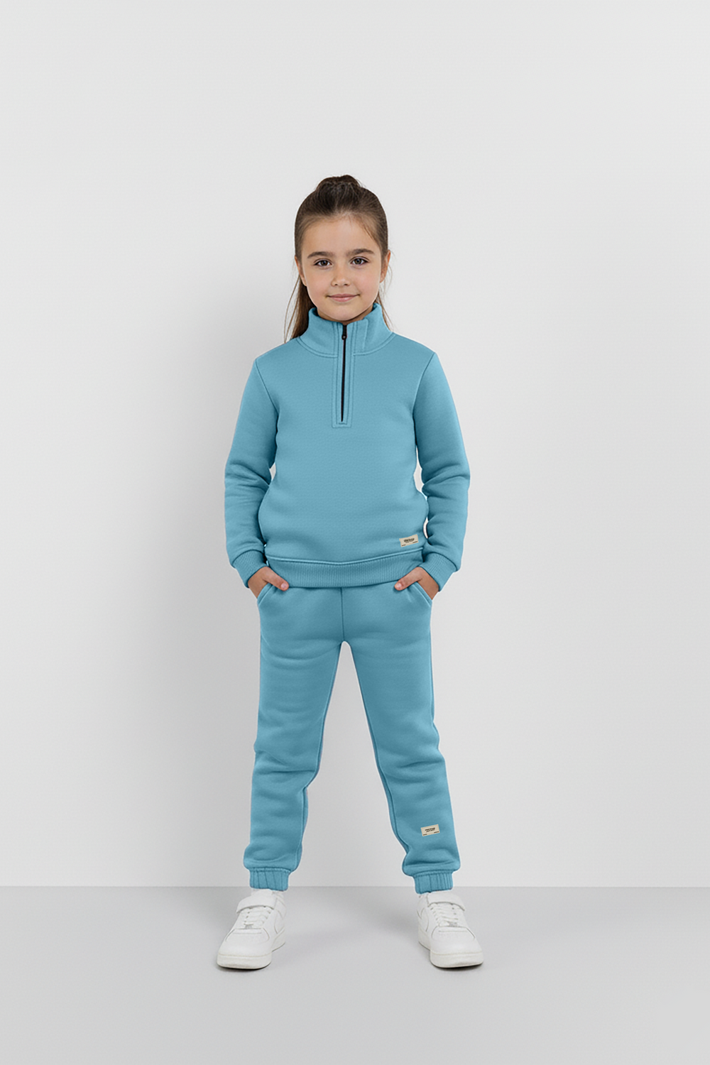 Stay cozy in winter with this ultra-soft mist sky quarter zip sweatshirt and trouser set, crafted from export-quality fabric for a premium look and feel.